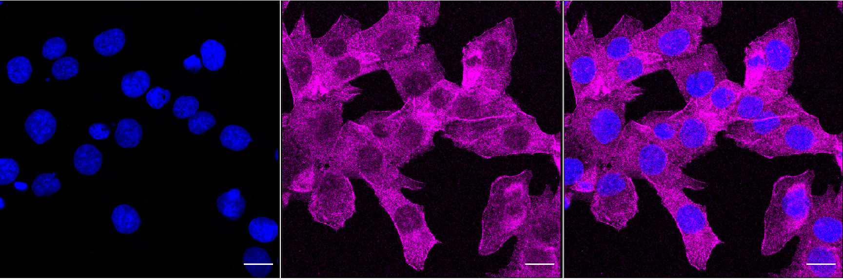 Immunocytochemical staining of HT-1080 cells with MLD antibody. Nuclei were stained blue with DAPI; MLD was stained magenta with Alexa Fluor? 647. Images were taken using Leica stellaris 5. Protein abundance based on laser Intensity and smart gain: Medium. Scale bar, 20 μm.