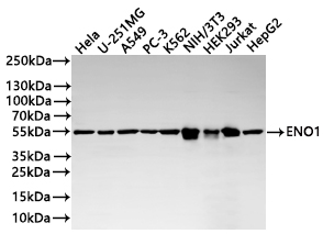別名:2 phospho D glycerate hydro lyase antibody; 2-phospho-D-glycerate hydro-lyase antibody; Alpha enolase antibody; Alpha enolase like 1 antibody; Alpha-enolase antibody; C myc promoter binding protein antibody; C-myc promoter-binding protein antibody; EC 4.2.1.11 antibody; eno1 antibody; ENO1L1 antibody; ENOA_HUMAN antibody; Enolase 1 (alpha) antibody; Enolase 1 (alpha) like 1 antibody; Enolase 1 antibody; Enolase alpha antibody; MBP 1 antibody; MBP-1 antibody; MBP1 antibody; MBPB1 antibody; MPB 1 antibody; MPB-1 antibody; MPB1 antibody; MYC promoter binding protein 1 antibody; NNE antibody; Non neural enolase antibody; Non-neural enolase antibody; Phosphopyruvate hydratase antibody; Plasminogen binding protein antibody; Plasminogen-binding protein antibody; PPH antibody; Tau crystallin antibody