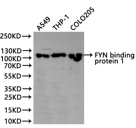 All lanes: FYN binding protein 1 antibody at 1:1000