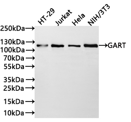 Positive WB detected in: HT-29 whole cell lysate(30μg), Jurkat whole cell lysate(30μg), Hela whole cell lysate(30μg), NIH/3T3 whole cell lysate(30μg)