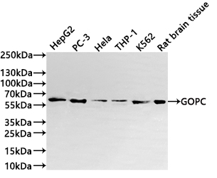 別名:CAL antibody; CFTR associated ligand antibody; CFTR-associated ligand antibody; dJ94G16.2 antibody; dJ94G16.2 PIST antibody; FIG antibody; Fused in glioblastoma antibody; Golgi associated PDZ and coiled coil motif containing antibody; Golgi associated PDZ and coiled coil motif containing protein antibody; Golgi-associated PDZ and coiled-coil motif-containing protein antibody; GOPC 1 antibody; GOPC antibody; GOPC_HUMAN antibody; GOPC1 antibody; OTTHUMP00000040403 antibody; PDZ protein interacting specifically with TC 10 antibody; PDZ protein interacting specifically with TC10 antibody; PDZ/coiled coil domain binding partner for the rho family GTPase TC 10 antibody; PDZ/coiled coil domain binding partner for the rho family GTPase TC10 antibody; PIST antibody; Protein interacting specifically with Tc 10 antibody; Protein interacting specifically with Tc10 antibody