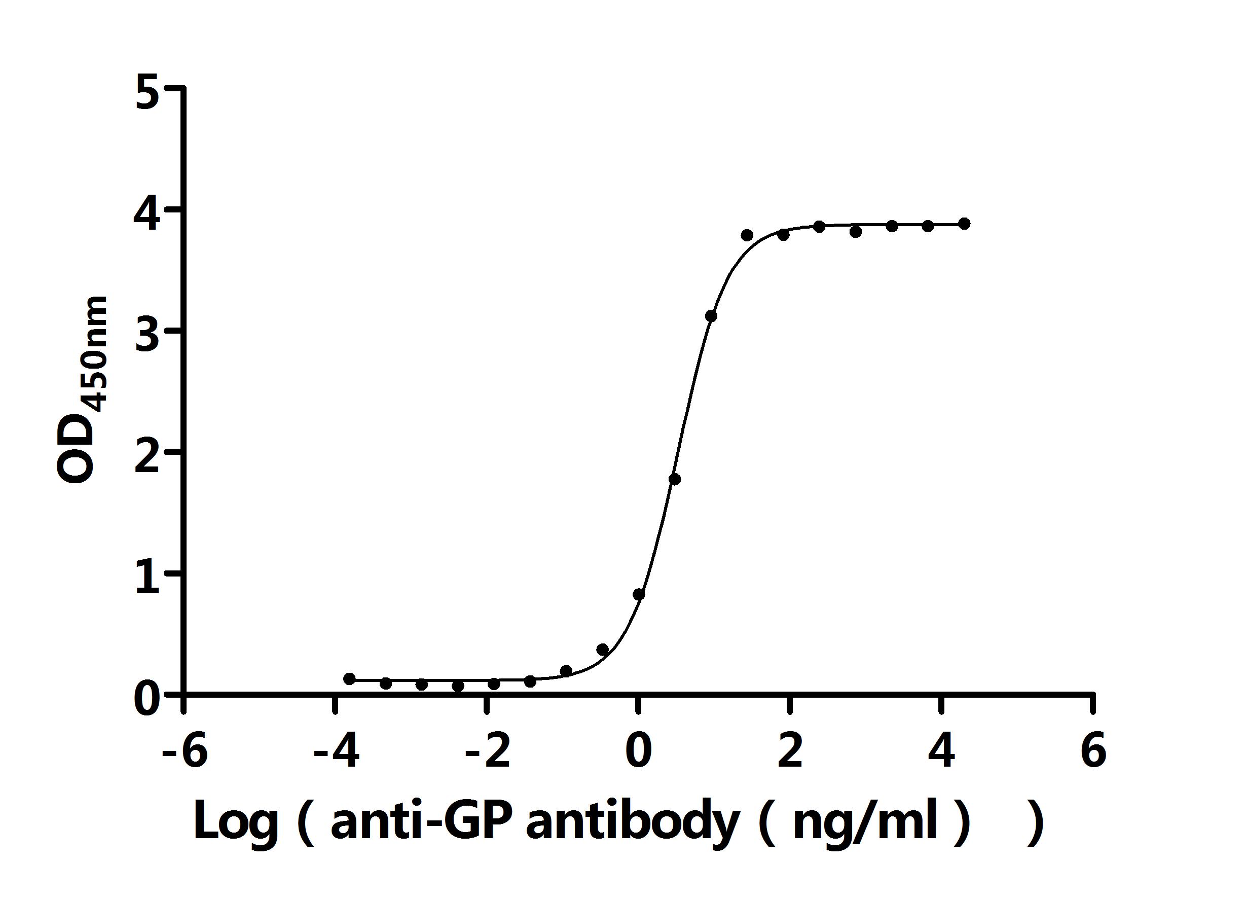 The Binding Activity of CCHFV GP with Anti-GP recombinant antibody Activity: Measured by its binding ability in a functional ELISA. Immobilized CCHFV GP (CSB-MP810349CSC2) at 2 μg/mL can bind Anti-GP recombinant antibody. The EC50 is 3.136-3.585 ng/mL.