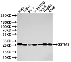 Positive WB detected in: HeLa whole cell lysate(20μg), THP-1 whole cell lysate(20μg), PC-3 whole cell lysate(20μg), U-251MG whole cell lysate(20μg), Jurkat whole cell lysate(20μg), HepG2 whole cell lysate(20μg), A549 whole cell lysate(20μg)