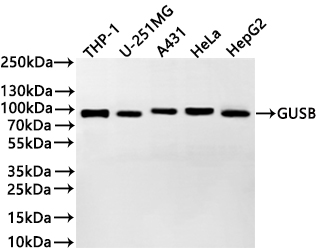 Positive WB detected in: THP-1 whole cell lysate(30μg), U-251MG whole cell lysate(30μg), A431 whole cell lysate(30μg), HeLa whole cell lysate(30μg), HepG2 whole cell lysate(30μg)