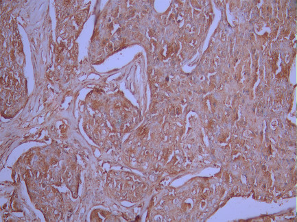 IHC image of CSB-RA179147A0HU diluted at 1:100 and staining in paraffin-embedded human melanoma cancer performed on a Leica BondTM system. After dewaxing and hydration, antigen retrieval was mediated by high pressure in a citrate buffer (pH 6.0). Section was blocked with 10% normal goat serum 30min at RT. Then primary antibody (1% BSA) was incubated at 4°C overnight. The primary is detected by a Goat anti-rabbit polymer IgG labeled by HRP and visualized using 0.05% DAB.