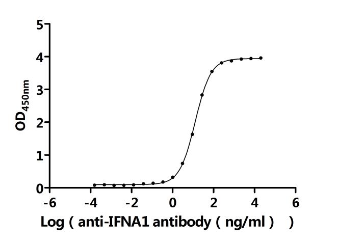 Activity: Measured by its binding ability in a functional ELISA.Immobilized Human IFNA1(CSB-MP365592HU) at 2 μg/mL can bind Anti-IFNA1 recombinant antibody. The EC50 is 12.11-13.37 ng/mL.