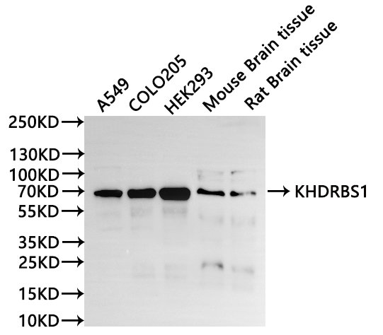 All lanes: KHDRBS1 antibody at 1:1000