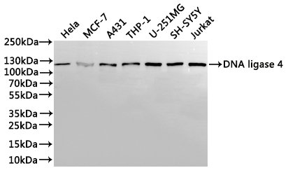 Positive WB detected in: Hela whole cell lysate(30μg), MCF-7 whole cell lysate(30μg), A431 whole cell lysate(30μg), THP-1 whole cell lysate(30μg), U-251MG whole cell lysate(30μg), SH-SY5Y whole cell lysate(30μg), Jurkat whole cell lysate(30μg)