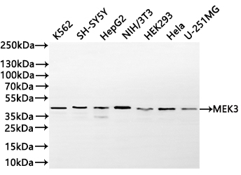 All lanes: MEK3 antibody at 1:1000