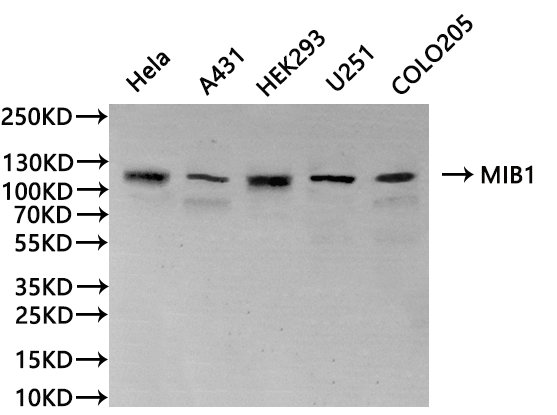 免疫原:A synthesized peptide from human MIB1 protein
