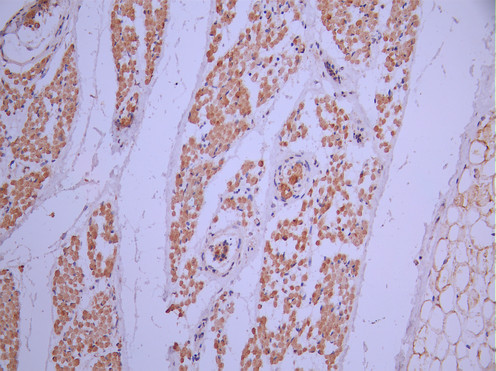 組織特異性:Mainly expressed in mast cells. Has a limited expression profile, both peripheral and within the central nervous system, with highest levels in dorsal root ganglion. Detected in blood vessels, scattered lymphocytes, and gastrointestinal ganglia (at protei