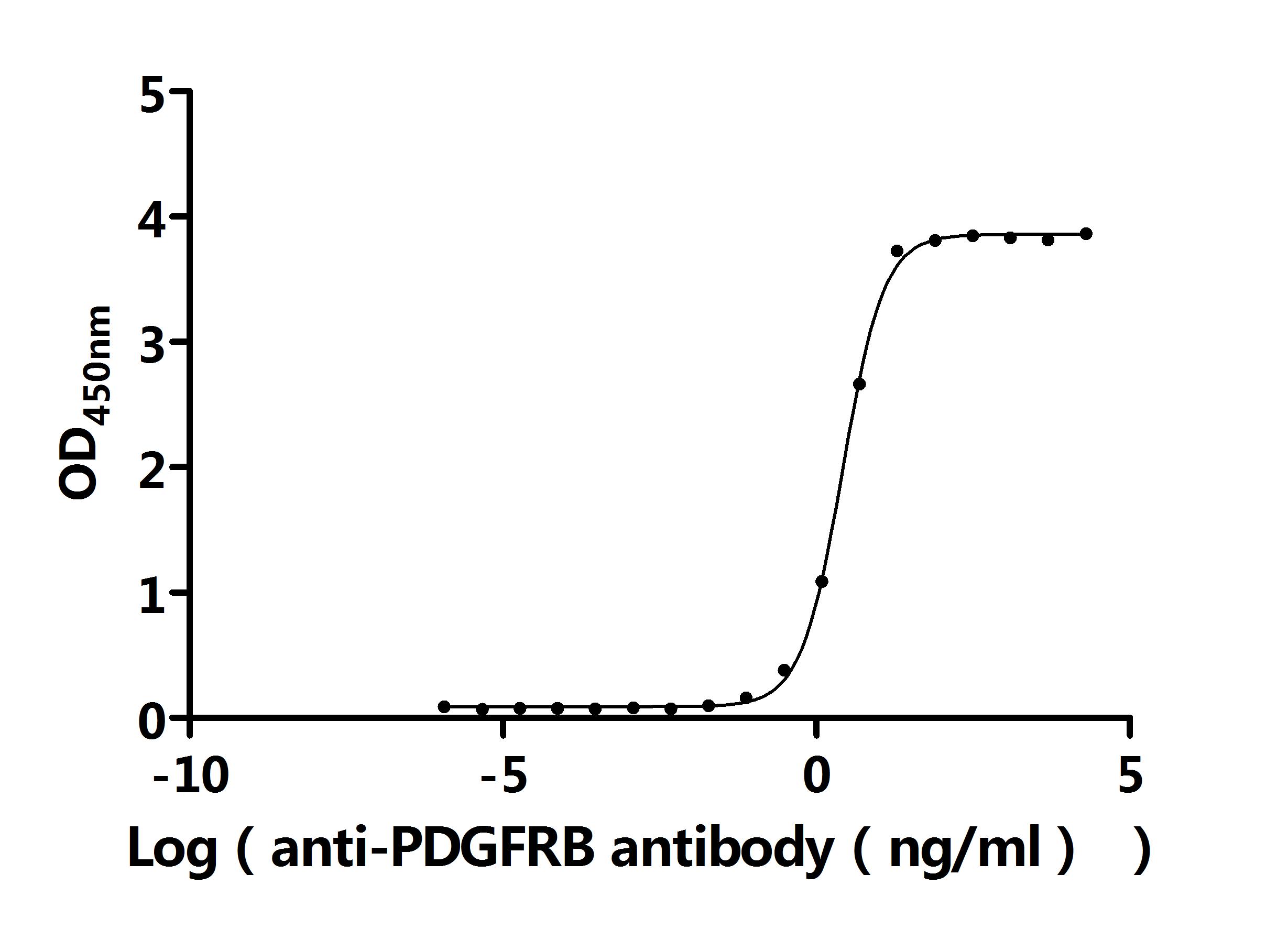 Activity: Measured by its binding ability in a functional ELISA. Immobilized Human PDGFRB (CSB-MP017713HU1) at 2 μg/mL can bind Anti-PDGFRB recombinant antibody. The EC50 is 2.471-2.776 ng/mL. -