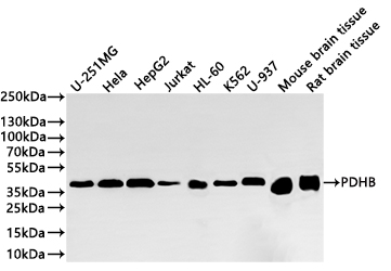 All lanes: PDHB antibody at 1:1000