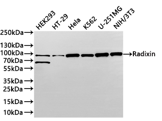 All lanes: Radixin antibody at 1:1000