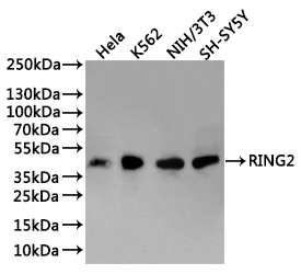 Positive WB detected in: Hela whole cell lysate(30μg), K562 whole cell lysate(30μg), NIH/3T3 whole cell lysate(30μg), SH-SY5Y whole cell lysate(30μg)