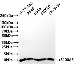 Positive WB detected in: U-251MG whole cell lysate(30μg), A549 whole cell lysate, HeLa whole cell lysate(30μg), SW620 whole cell lysate(30μg), SH-SY5Y whole cell lysate(30μg)