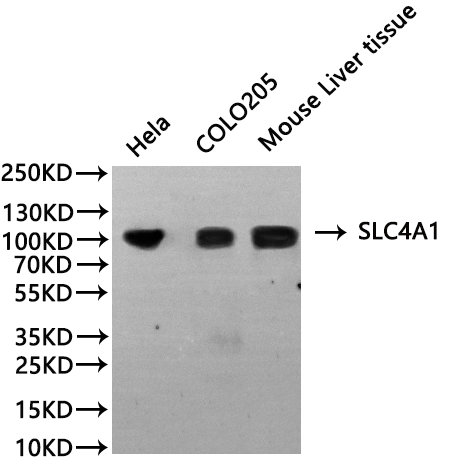 All lanes: SLC4A1 antibody at 1:1000