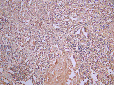 IHC image of CSB-RA058285A0HU diluted at 1:100 and staining in paraffin-embedded human breast cancer performed on a Leica BondTM system. After dewaxing and hydration, antigen retrieval was mediated by high pressure in a citrate buffer (pH 6.0). Section was blocked with 10% normal goat serum 30min at RT. Then primary antibody (1% BSA) was incubated at 4°C overnight. The primary is detected by a Goat anti-rabbit polymer IgG labeled by HRP and visualized using 0.05% DAB.