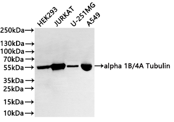 All lanes: alpha 1B/4A Tubulin antibody at 1:1000