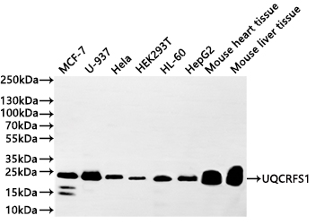 Positive WB detected in: MCF-7 whole cell lysate(20μg), U937 whole cell lysate(20μg),Hela whole cell lysate(20μg),HEK293T whole cell lysate(20μg),HL-60 whole cell lysate(20μg),HepG2 whole cell lysate(20μg), Mouse heart tissue lysate(20μg), Mouse liver tissue lysate(20μg)