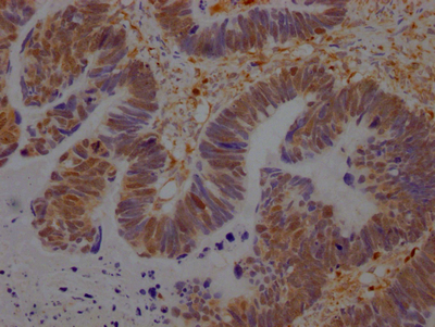 IHC image of CSB-RA981267A0HU diluted at 1:100 and staining in paraffin-embedded human ovarian cancer performed on a Leica BondTM system. After dewaxing and hydration, antigen retrieval was mediated by high pressure in a citrate buffer (pH 6.0). Section was blocked with 10% normal goat serum 30min at RT. Then primary antibody (1% BSA) was incubated at 4℃ overnight. The primary is detected by a Goat anti-rabbit IgG polymer labeled by HRP and visualized using 0.05% DAB.