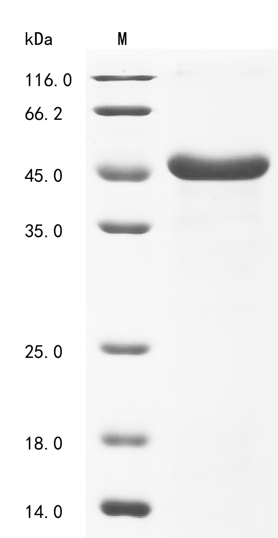 復溶:We recommend that this vial be briefly centrifuged prior to opening to bring the contents to the bottom. Please reconstitute protein in deionized sterile water to a concentration of 0.1-1.0 mg/mL.We recommend to add 5-50% of glycerol (final concentration) and aliquot for long-term storage at -20°C/-80°C. Our default final concentration of glycerol is 50%. Customers could use it as reference.