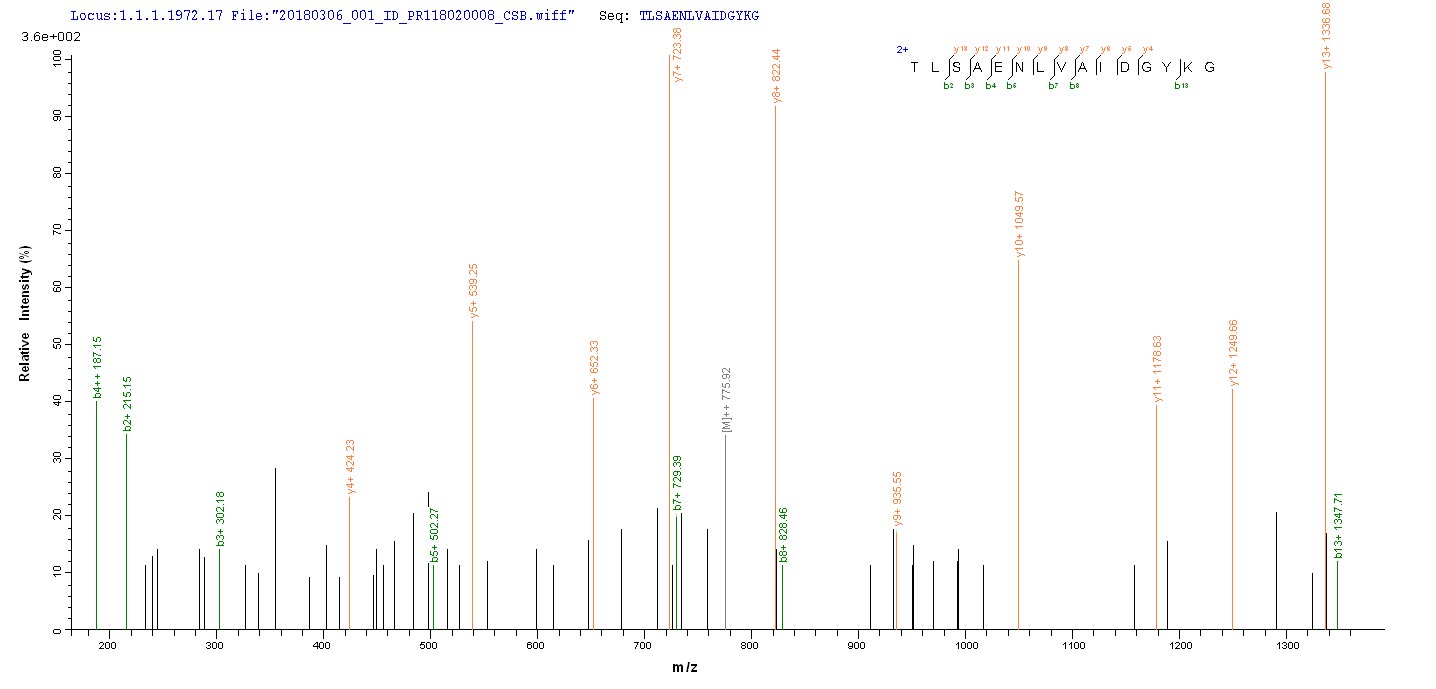 Based on the SEQUEST from database of E.coli host and target protein, the LC-MS/MS Analysis result of CSB-EP530746DSB could indicate that this peptide derived from E.coli-expressed Chlamydia trachomatis (strain D/UW-3/Cx) pmpD.