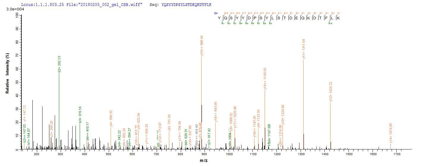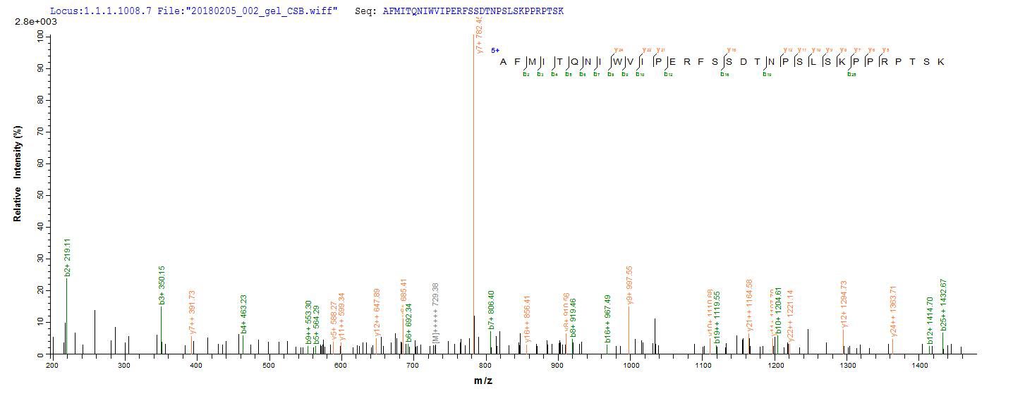 Based on the SEQUEST from database of E.coli host and target protein, the LC-MS/MS Analysis result of CSB-EP323098CLQ could indicate that this peptide derived from E.coli-expressed Clostridium botulinum botD.