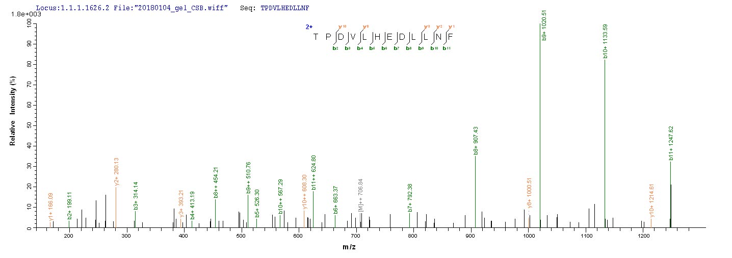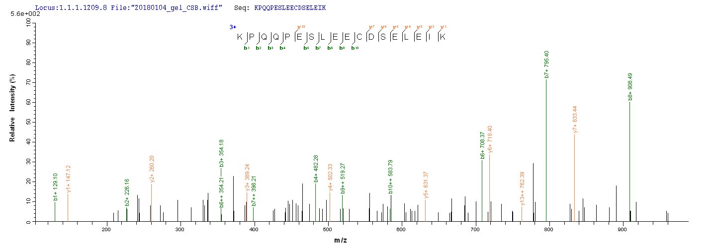 Based on the SEQUEST from database of E.coli host and target protein, the LC-MS/MS Analysis result of CSB-EP355980EFA could indicate that this peptide derived from E.coli-expressed Epstein-Barr virus (strain B95-8) (HHV-4) (Human herpesvirus 4) BZLF1.