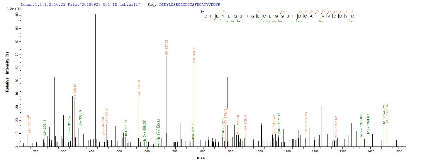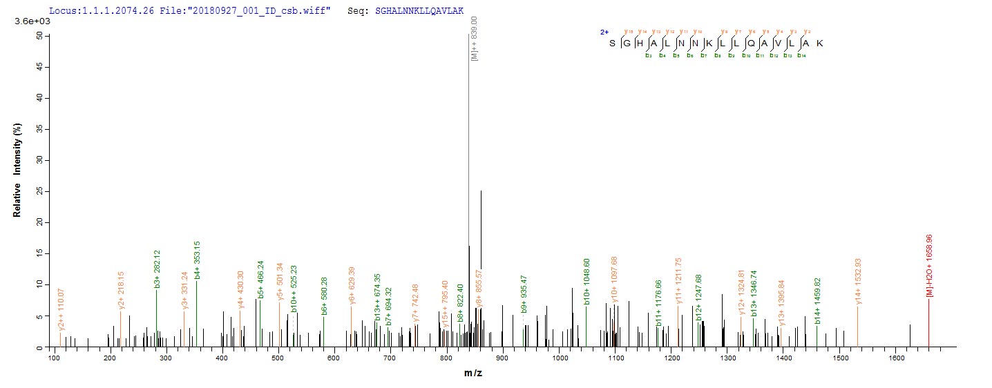 Based on the SEQUEST from database of E.coli host and target protein, the LC-MS/MS Analysis result of CSB-EP358910ENVa2 could indicate that this peptide derived from E.coli-expressed Escherichia coli (strain K12) lpxC.