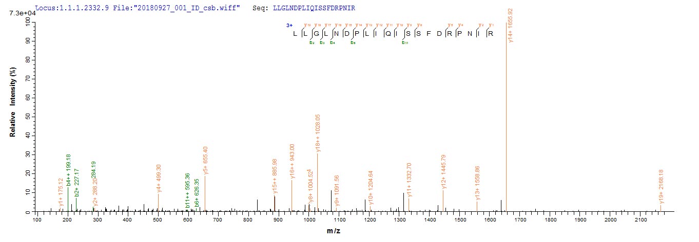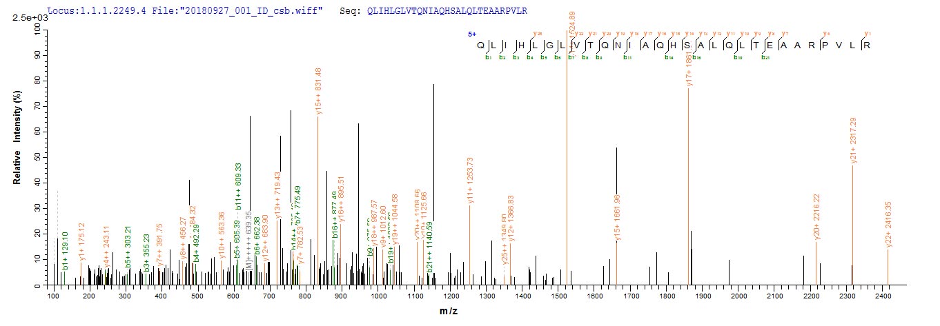 Based on the SEQUEST from database of E.coli host and target protein, the LC-MS/MS Analysis result of CSB-RP179794Ba could indicate that this peptide derived from E.coli-expressed Escherichia coli (strain K12) recQ.