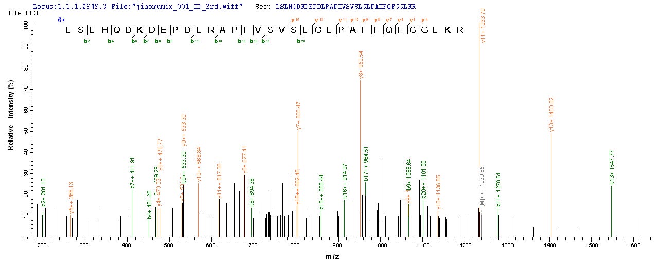 Based on the SEQUEST from database of E.coli host and target protein, the LC-MS/MS Analysis result of CSB-EP356444ENV could indicate that this peptide derived from E.coli-expressed Escherichia coli (strain K12) alkB.