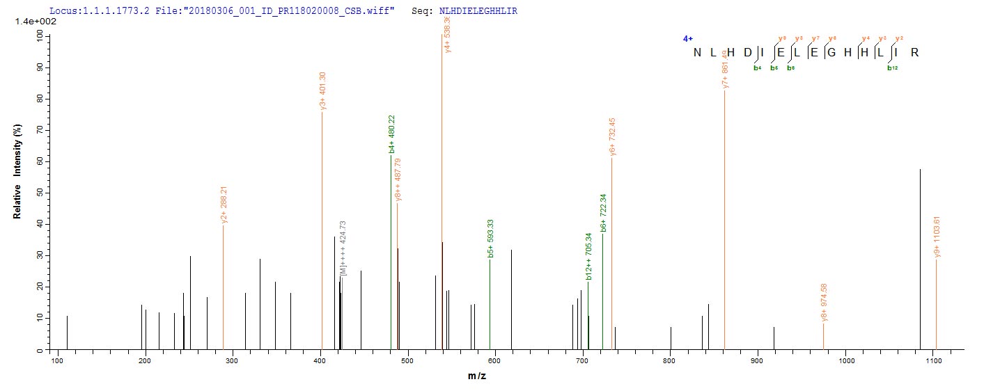 Based on the SEQUEST from database of E.coli host and target protein, the LC-MS/MS Analysis result of CSB-EP364823EGX could indicate that this peptide derived from E.coli-expressed Escherichia coli O6:H1 (strain CFT073 / ATCC 700928 / UPEC) glcC.