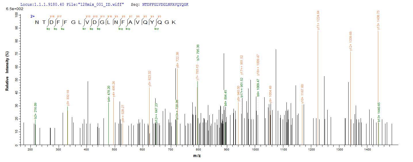 Based on the SEQUEST from database of E.coli host and target protein, the LC-MS/MS Analysis result of CSB-EP848941EOD could indicate that this peptide derived from E.coli-expressed Escherichia coli O157:H7 ompC.