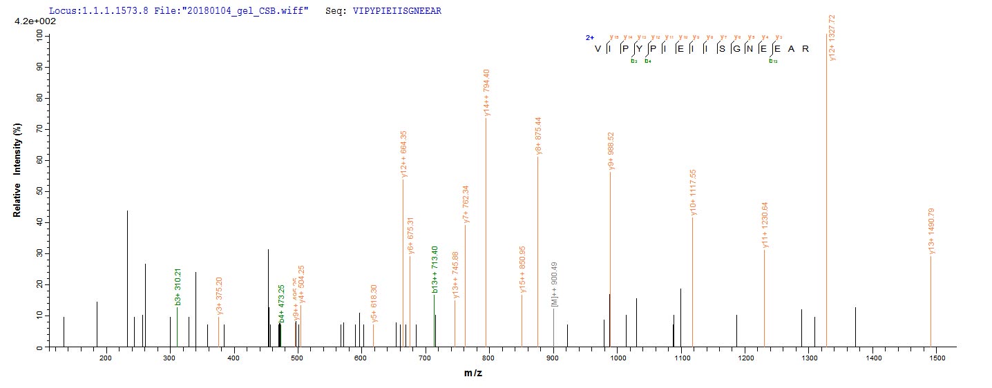 Based on the SEQUEST from database of E.coli host and target protein, the LC-MS/MS Analysis result of CSB-EP360285EGX could indicate that this peptide derived from E.coli-expressed Escherichia coli O6:H1 (strain CFT073 / ATCC 700928 / UPEC) ppx.
