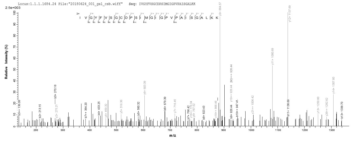 Based on the SEQUEST from database of E.coli host and target protein, the LC-MS/MS Analysis result of CSB-EP001118HU could indicate that this peptide derived from E.coli-expressed Homo sapiens (Human) ACAA2.