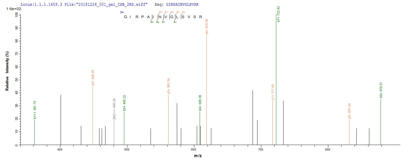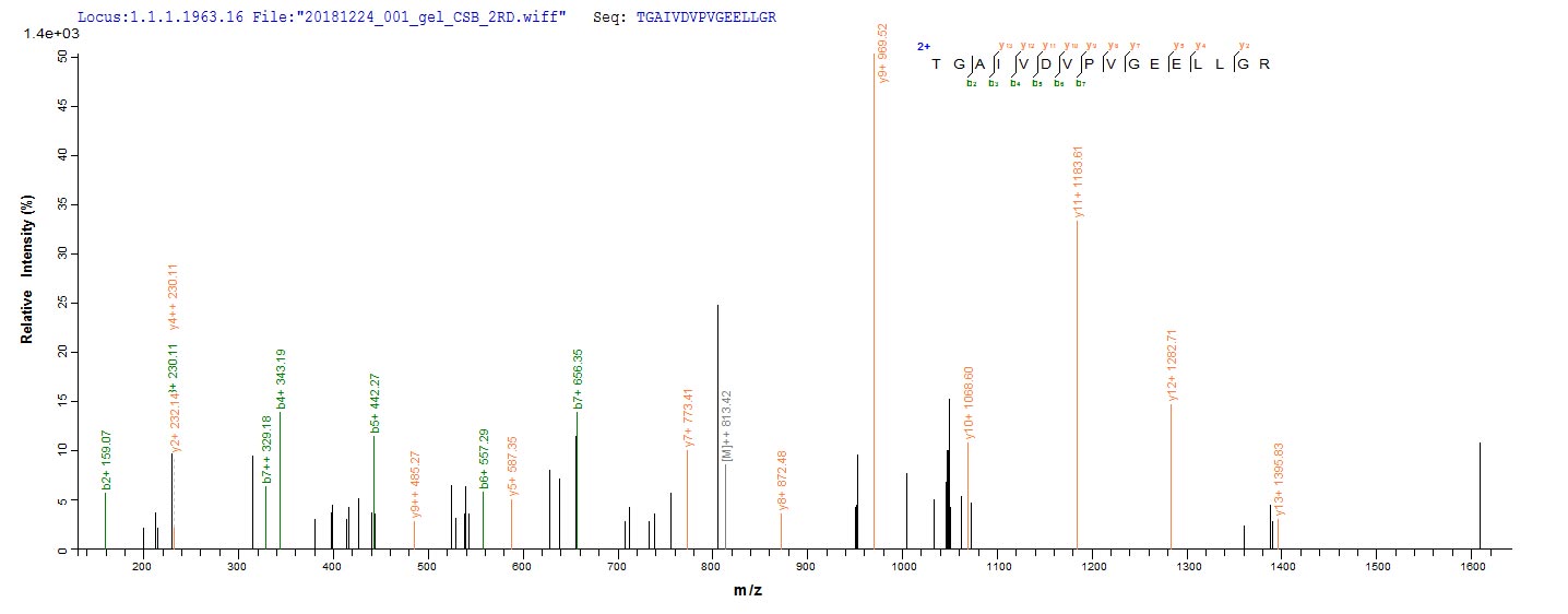 Based on the SEQUEST from database of Yeast host and target protein, the LC-MS/MS Analysis result of CSB-YP002344HU could indicate that this peptide derived from Yeast-expressed Homo sapiens (Human) ATP5F1A.