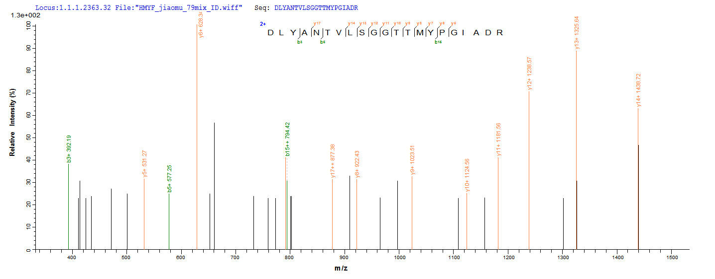Based on the SEQUEST from database of E.coli host and target protein, the LC-MS/MS Analysis result of CSB-RP016294h could indicate that this peptide derived from E.coli-expressed Homo sapiens (Human) ACTB.