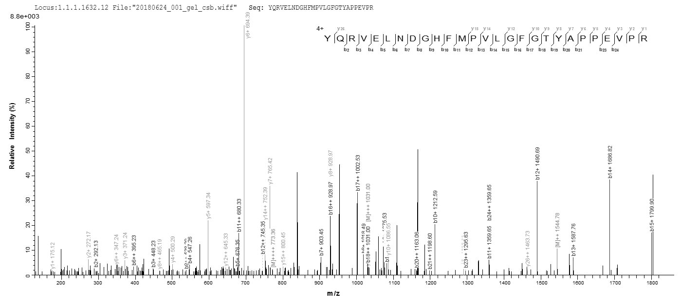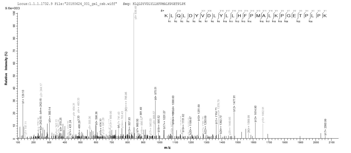 Based on the SEQUEST from database of E.coli host and target protein, the LC-MS/MS Analysis result of CSB-EP001545HU could indicate that this peptide derived from E.coli-expressed Homo sapiens (Human) AKR1C4.