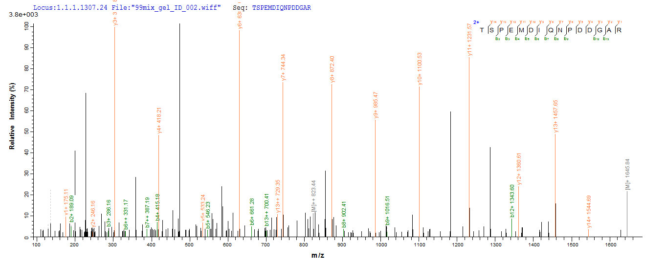 Based on the SEQUEST from database of E.coli host and target protein, the LC-MS/MS Analysis result of CSB-EP014597HU(A5) could indicate that this peptide derived from E.coli-expressed Homo sapiens (Human) MKI67.