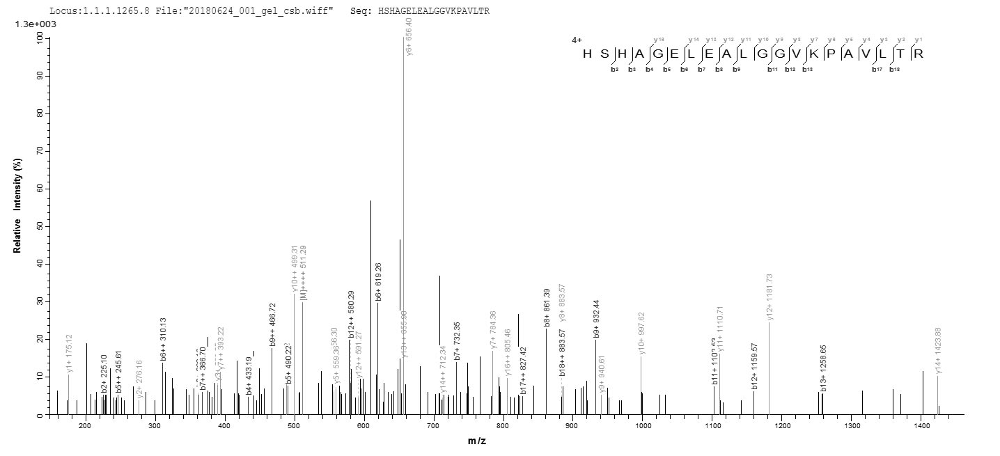 Based on the SEQUEST from database of E.coli host and target protein, the LC-MS/MS Analysis result of CSB-EP021663HUb1 could indicate that this peptide derived from E.coli-expressed Homo sapiens (Human) SLC4A1.