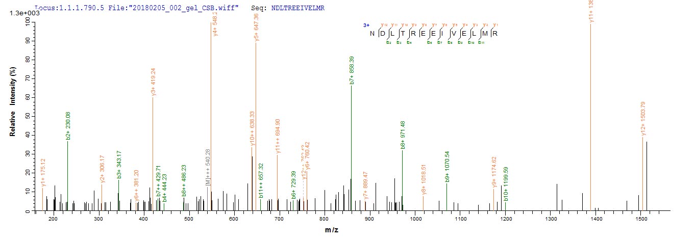 Based on the SEQUEST from database of E.coli host and target protein, the LC-MS/MS Analysis result of CSB-EP004548HU could indicate that this peptide derived from E.coli-expressed Homo sapiens (Human) CASP3.