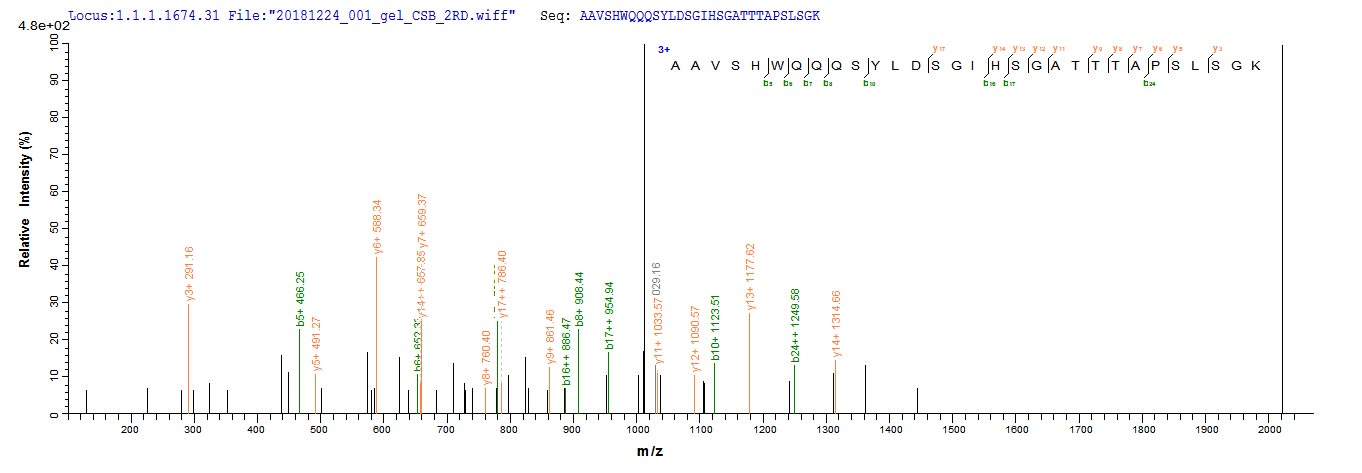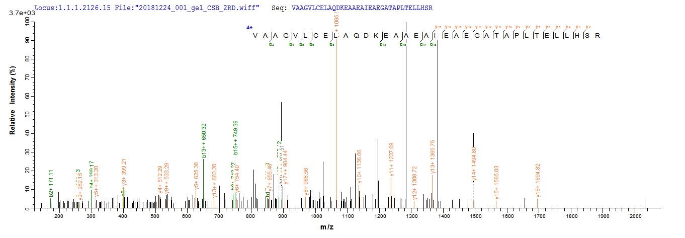 Based on the SEQUEST from database of E.coli host and target protein, the LC-MS/MS Analysis result of CSB-EP006169HU could indicate that this peptide derived from E.coli-expressed Homo sapiens (Human) CTNNB1.