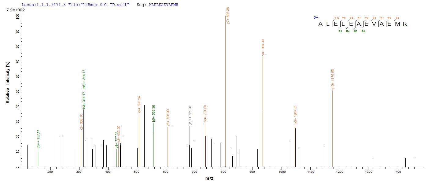 Based on the SEQUEST from database of E.coli host and target protein, the LC-MS/MS Analysis result of CSB-EP005103HU could indicate that this peptide derived from E.coli-expressed Homo sapiens (Human) CDR2.