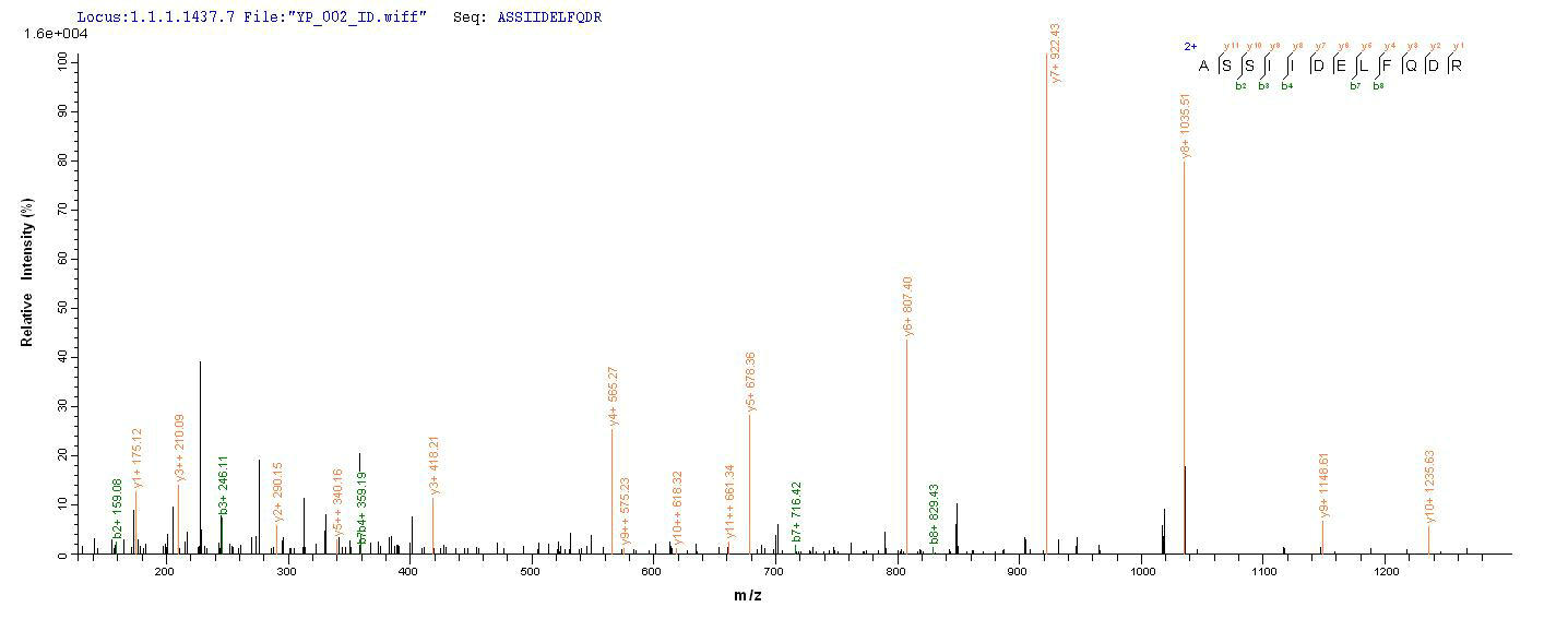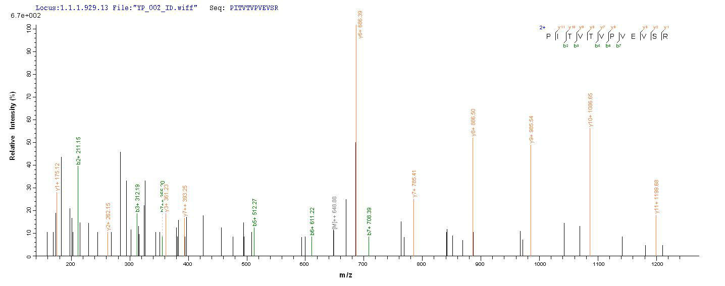 Based on the SEQUEST from database of E.coli host and target protein, the LC-MS/MS Analysis result of CSB-EP005595HU could indicate that this peptide derived from E.coli-expressed Homo sapiens (Human) CLU.