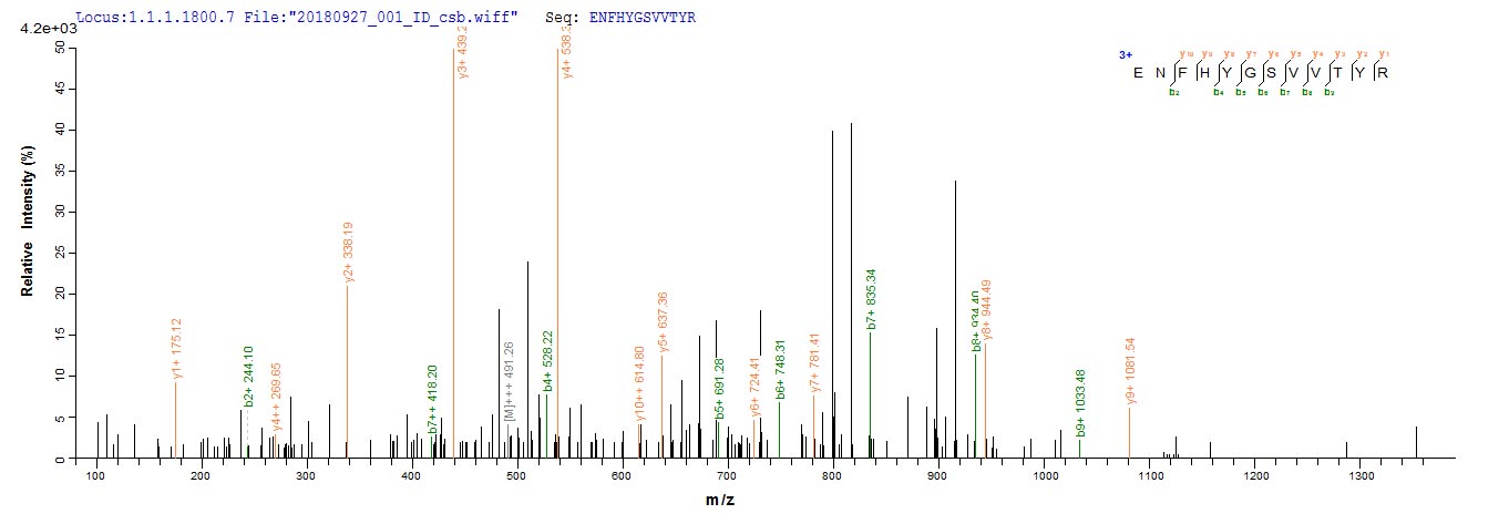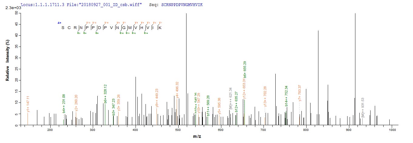 Based on the SEQUEST from database of E.coli host and target protein, the LC-MS/MS Analysis result of CSB-EP005932HU could indicate that this peptide derived from E.coli-expressed Homo sapiens (Human) CR1.