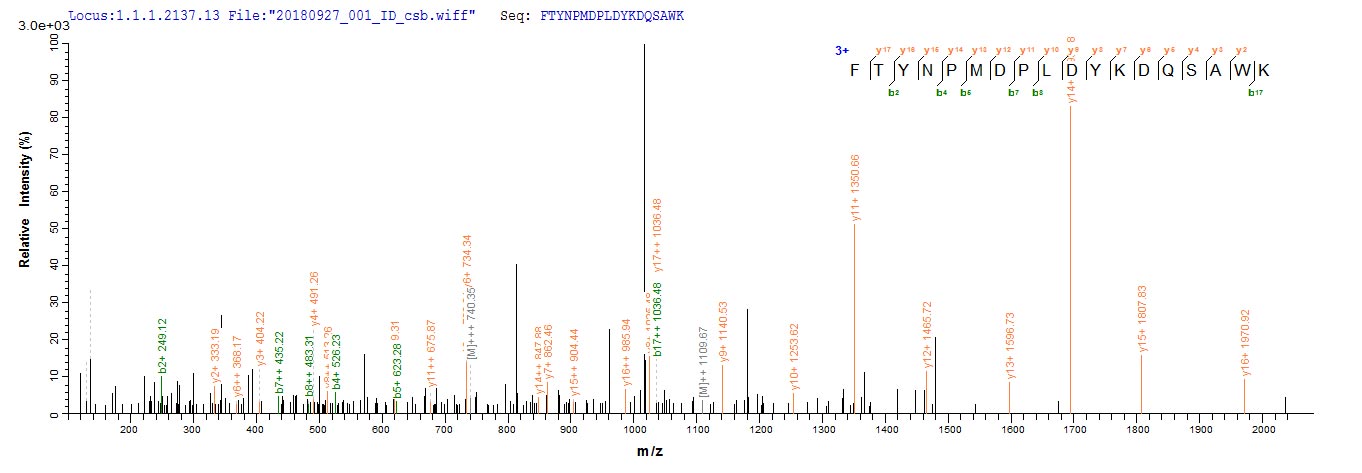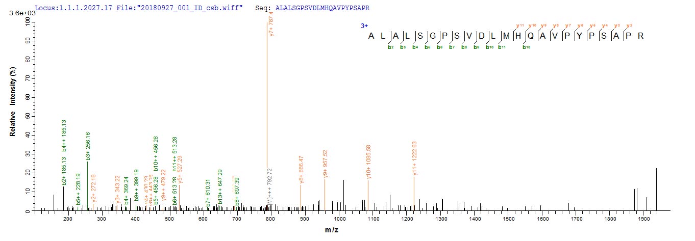 Based on the SEQUEST from database of E.coli host and target protein, the LC-MS/MS Analysis result of CSB-EP006004HU could indicate that this peptide derived from E.coli-expressed Homo sapiens (Human) CRX.