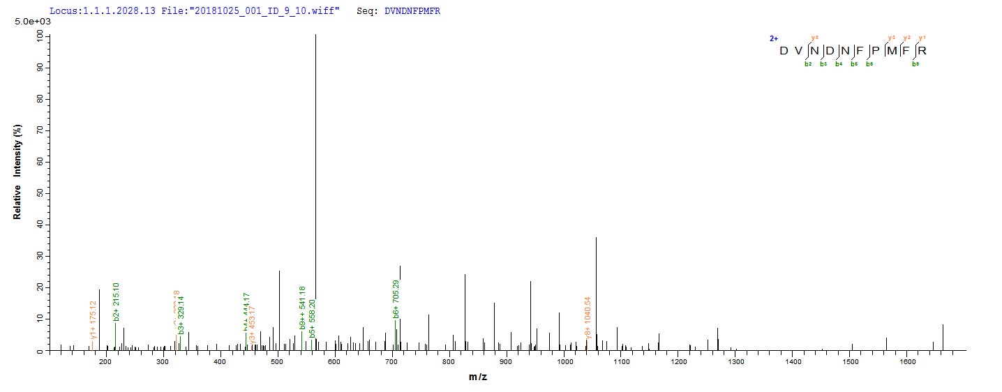 Based on the SEQUEST from database of E.coli host and target protein, the LC-MS/MS Analysis result of CSB-EP007205HUa0 could indicate that this peptide derived from E.coli-expressed Homo sapiens (Human) DSG3.