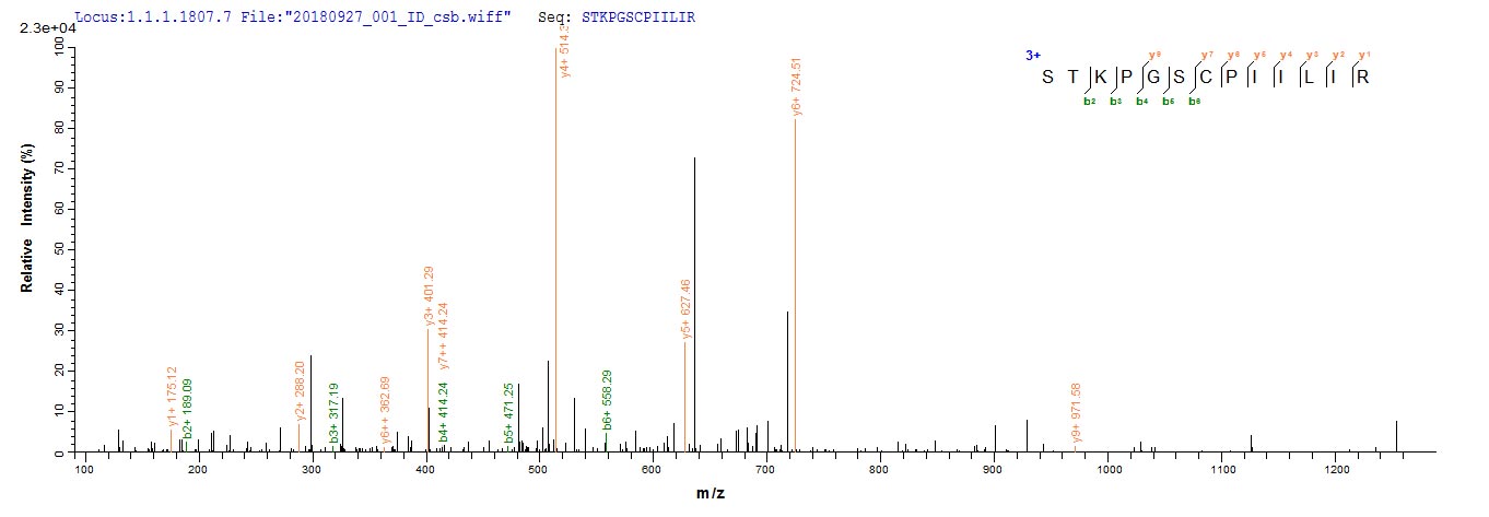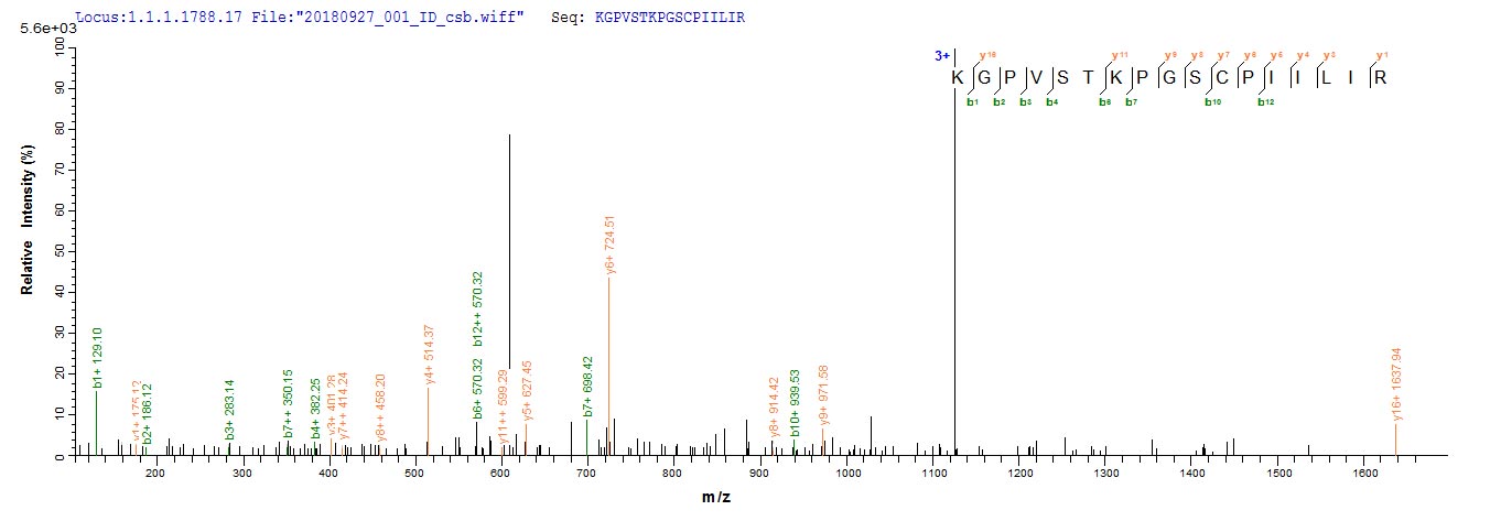 Based on the SEQUEST from database of Yeast host and target protein, the LC-MS/MS Analysis result of CSB-YP017952HU could indicate that this peptide derived from Yeast-expressed Homo sapiens (Human) PI3.