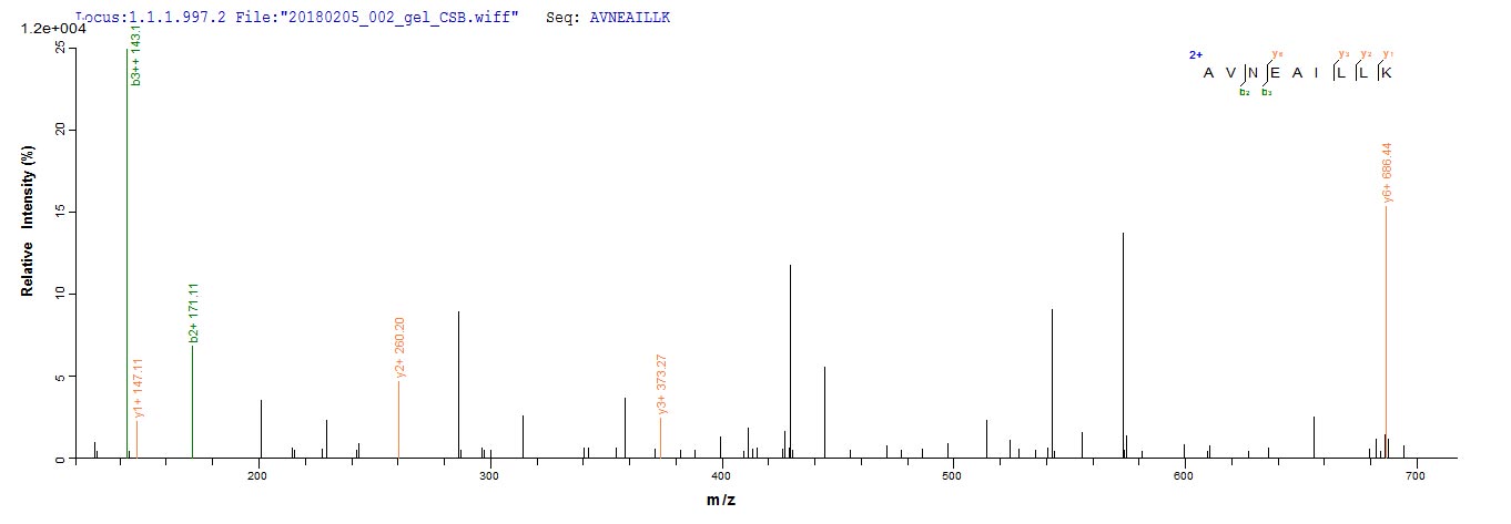 Based on the SEQUEST from database of E.coli host and target protein, the LC-MS/MS Analysis result of CSB-EP008415HU could indicate that this peptide derived from E.coli-expressed Homo sapiens (Human) FANCC.